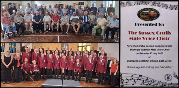 The concert itself took place on Saturday evening, and attracted a large audience. Budleigh Salterton and Sussex Gruffs sang a variety of music from their respective repertoires, including songs from musicals and popular classics, and also joined forces for seven exhilarating and totally epic joint numbers. The concert, which raised £1000 for local charity Sidmouth Hospice at Home, concluded with an incredible joint rendition of An American Trilogy, which raised the roof, and resulted in a standing ovation and an encore!